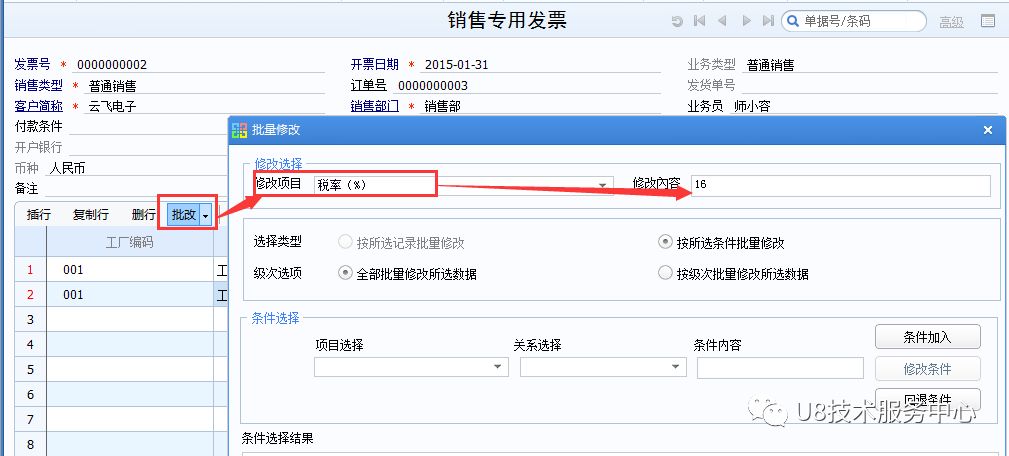 1)、发票开票在2018年5月1日之后,发票的开票税率是16%税率,但是之前录入的订单是17%税率,参照之前单据自动带17%税率,怎么批量调整?