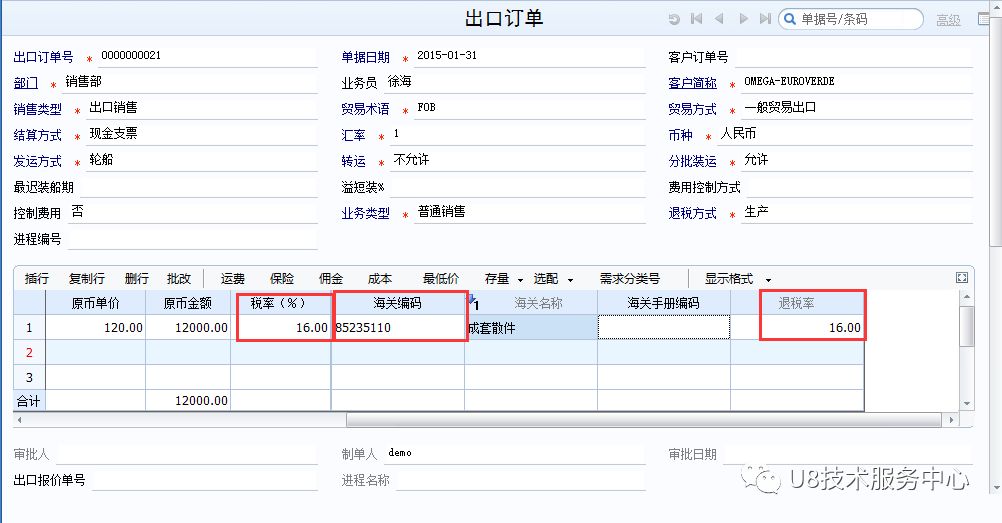 设置效果如下:增加出口订单,表体中录入海关编码,自动带出税率。